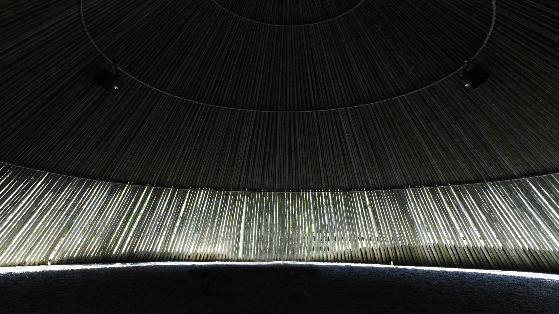 陳倖平先生找來好友林浚鎰設計師,這位出生於農業時代末班車的設計師,木工出身,著重回歸自然,最真、最樸實的即是美,和陳倖平先生的理念不謀而合。對於傳承文化藝術和生活美學的熱忱,及鬼才設計師的巧思下,一座斗笠造型的竹屋,安然生長在這原本就靜謐安和的土地上。林設計師由衷熱愛創造獨特性作品,以及擅長天馬行空的創造力,讓書院無違和地和大自然融為一體,讓進入此空間的人,內心不自覺地放鬆緩慢了起來,多了一分覺知內在靈性的敏感,讓心得以安定下來。
