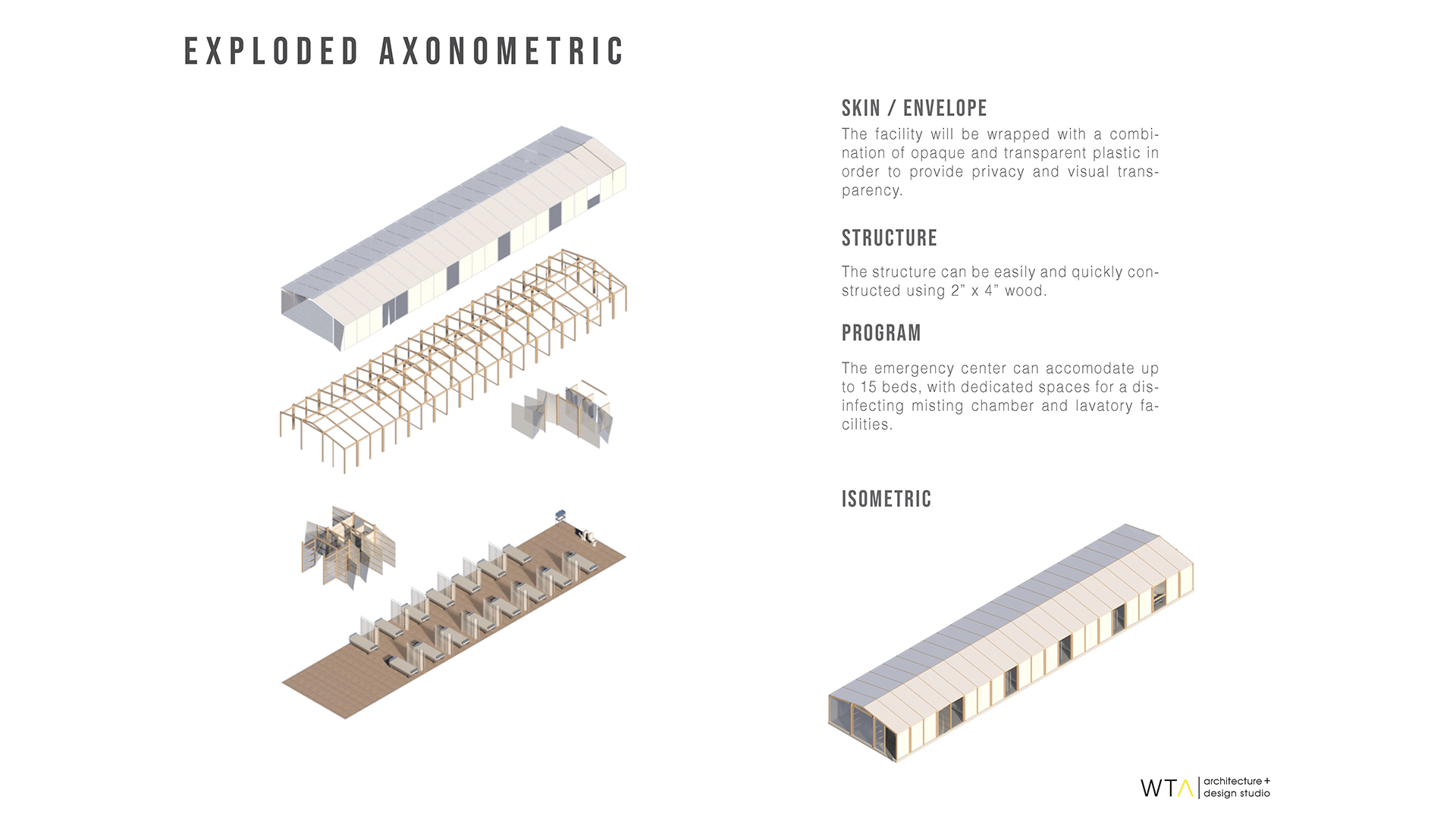 當城市因疫情變得空曠,世界各地建築師都在思考自己在這非常時期所扮演的角色。由於新型冠狀病毒的持續爆發導致醫院接收病人隔離已不勝負荷;為了面對遏制病毒的挑戰,WTA設計工作室(WTA Architecture + Design Studio)的首席建築師黃清泉(William Ti)與社區成員一起合作發動了緊急隔離設施(EQF)的建設。為了建造該設施,作為倡導者,黃清泉收到了WTA最近在建築與設計的慶祝節慶(Anthology Architecture and Design Festival)開發的展館的啟發,一個「可擴展性,有簡潔性」的裝置。
