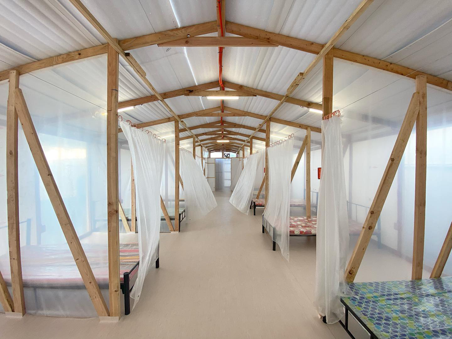 緊急隔離設施(EQF)是用來照料症狀輕微和無症狀患者的臨時建築,並同時以最大限度來輔助醫院的不足。為了避免交叉感染的可能,患者和醫護人員都有指定的出入口。除此之外,氣流從前至後的順風而下,以防止再循環。該設計可以按照需求做隨意的變動,也可以聚整合模組,以便容納更多的病人。