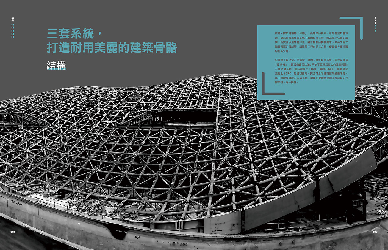這本書,是寫給所有對衛武營國家藝術文化中心營建方法感到興趣的人。本書由實構築季刊編輯部企畫,以科普的角度撰寫,透過深入淺出的方式,述說過程中突破的6大關卡,並搭配珍貴的施工紀錄照片,讓即便不是建築專業的背景讀者,也能快速掌握重點,一同揭開「怎麼蓋一座藝術中心」的神秘面紗。