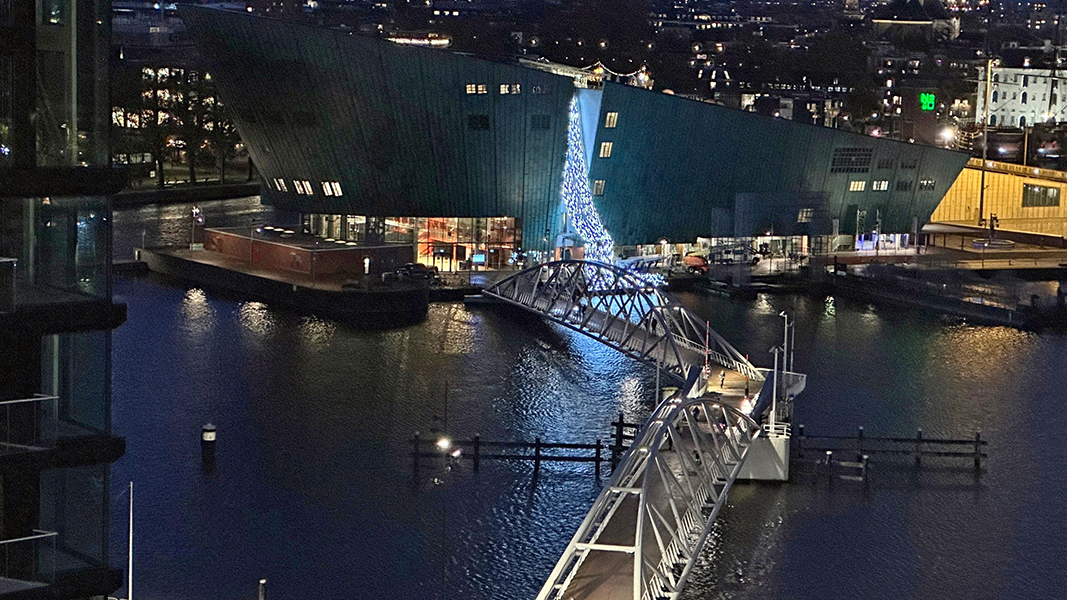 作品「逆轉瀑布」是我們延續「運用幻象」的創作系列,以水為題、以光為素材,應用視錯覺的手法,呈現與水相關的題材與光景。而這次的作品與以往不同的是,試圖在阿姆斯特丹的都市場景中,鑲入一座巨大的光之瀑布,並與城市的建築地標:NEMO相結合。