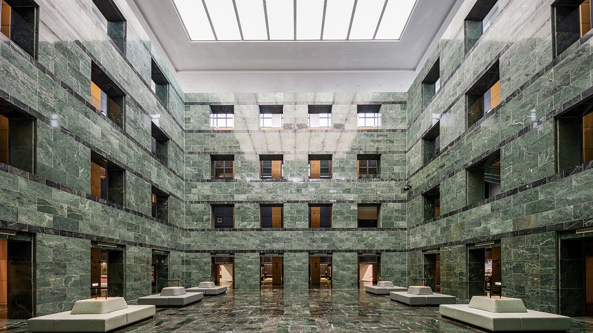 We found that the five main spaces of the museum: the entrance lobby, the Mountain Yard, the exhibition atrium, the education center and the backyard garden were isolated from each other. In order to connect them, we demolished four huge rarely used stairs to create a 12-meter-wide corridor as a new entrance axis. The corridor connects the five main spaces and allows a sense of unity within the museum.