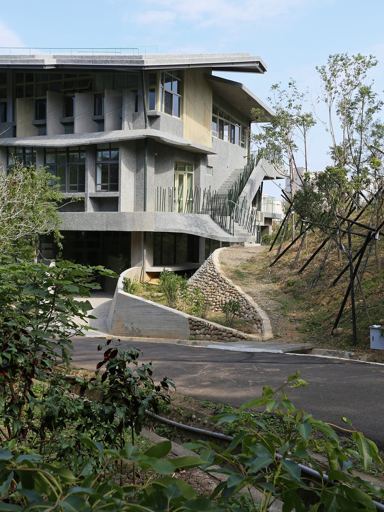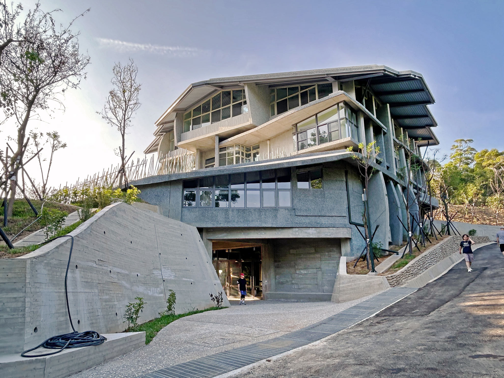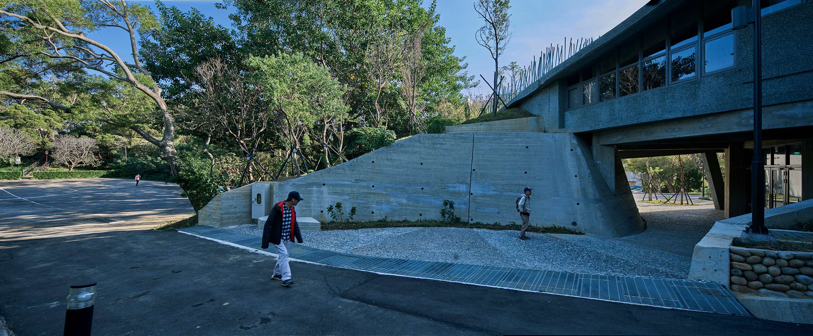 Jie Ying Hall at NTHU chose not to occupy any flat land in front of the slope, nor does it stand on the hillside, but instead, it is ‘embedded within.’