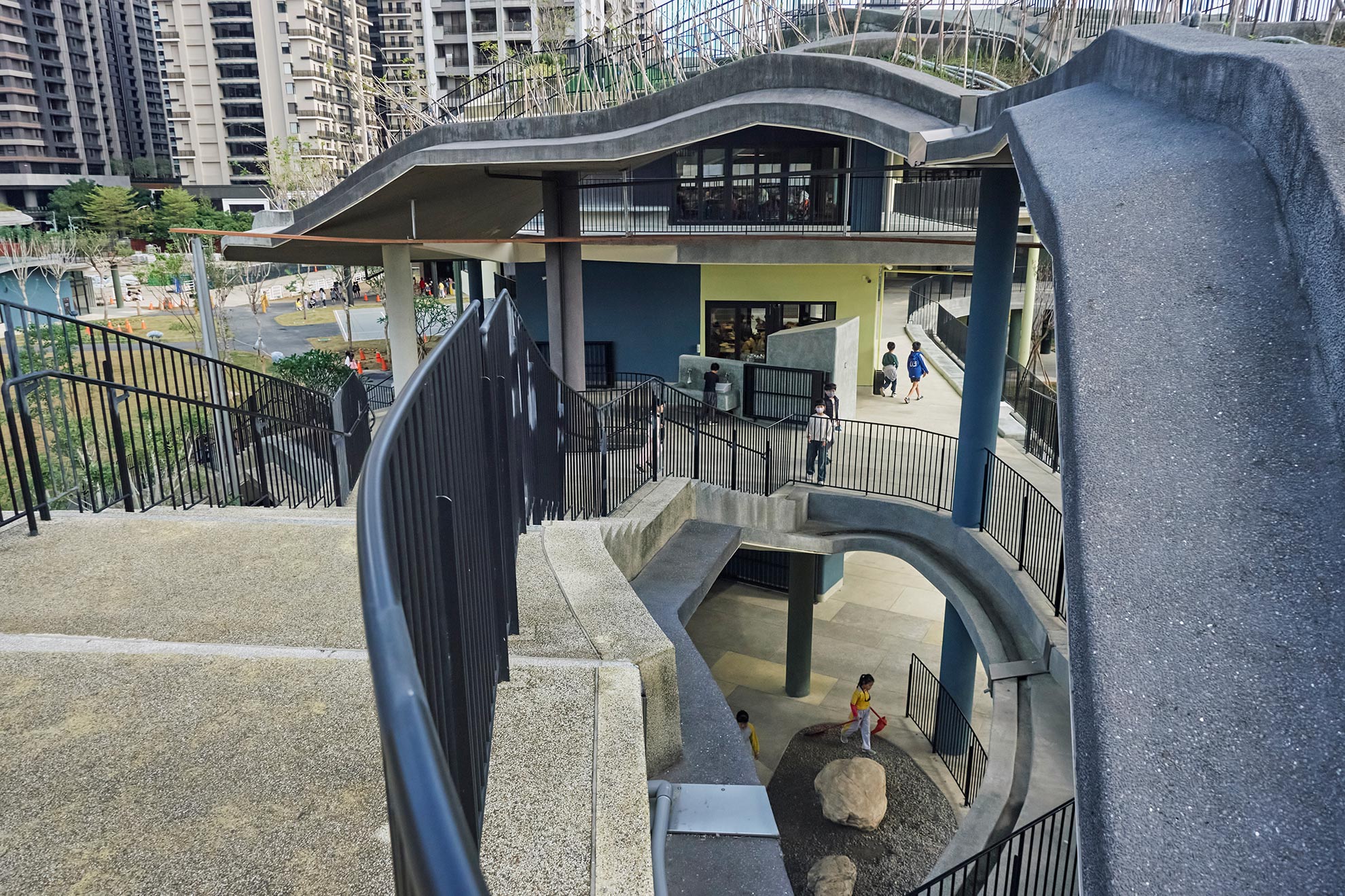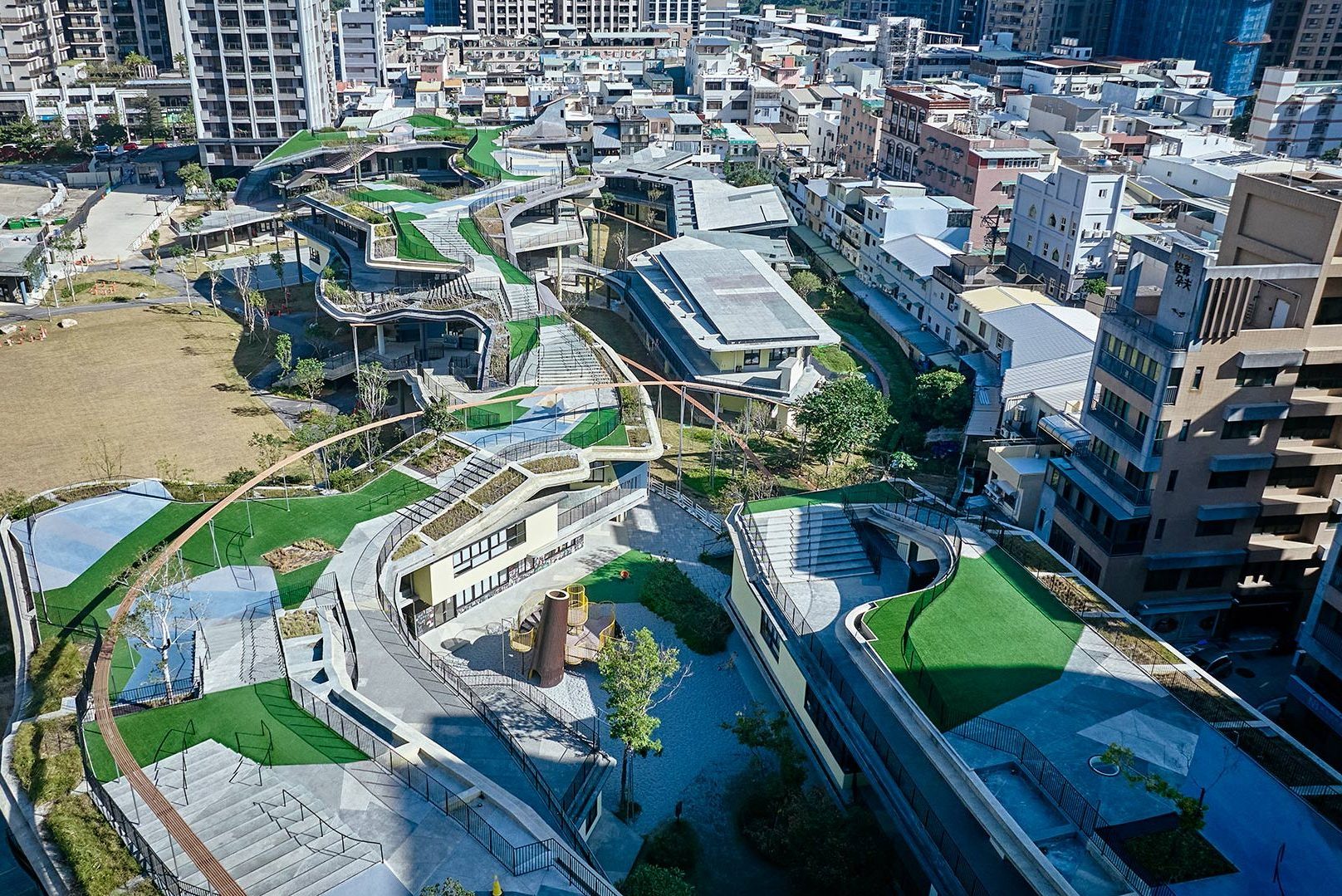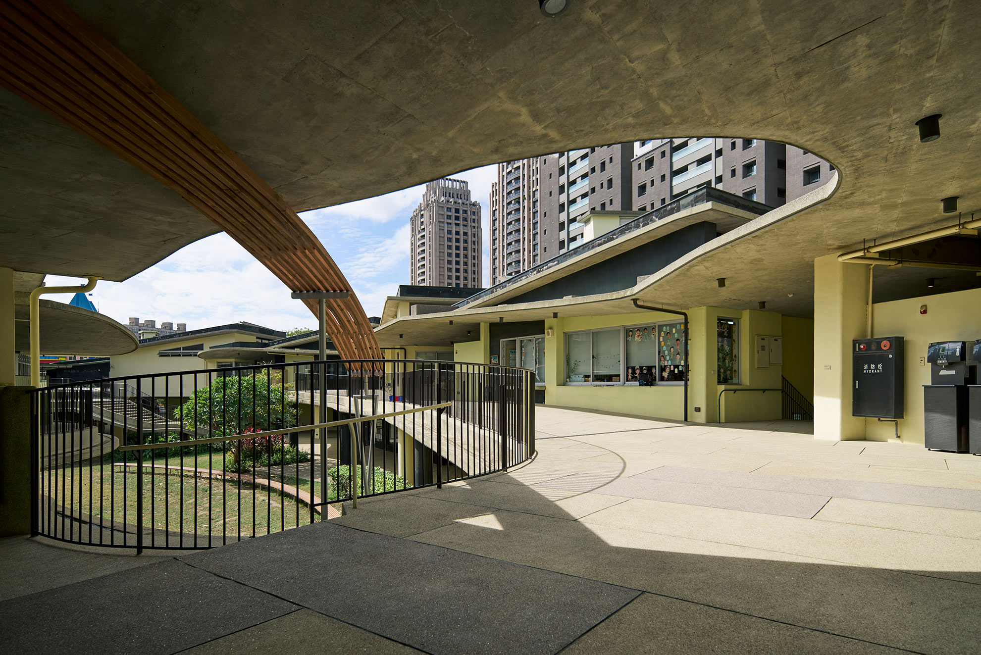 The kindergarten and lower-grade clusters, our earliest design, were strategically positioned in an urban corner where traffic could be managed independently. This area would embody the philosophy of mutual support and dynamic interaction in traffic at the intersection of Longshan East Road and Ciji Road.