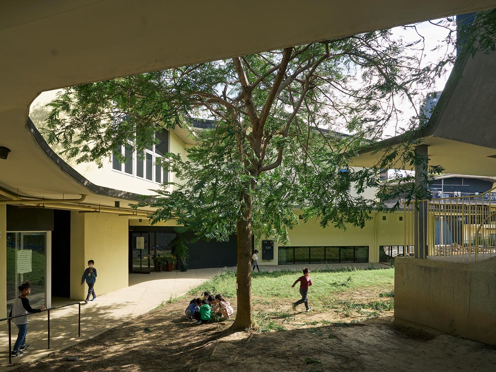 The size of a 25-student classroom was slightly larger than typical plantations in Taiwan and lacked a cozy familiarity. We partially fragmented these spaces to resemble tree canopies, which then overlapped one another.