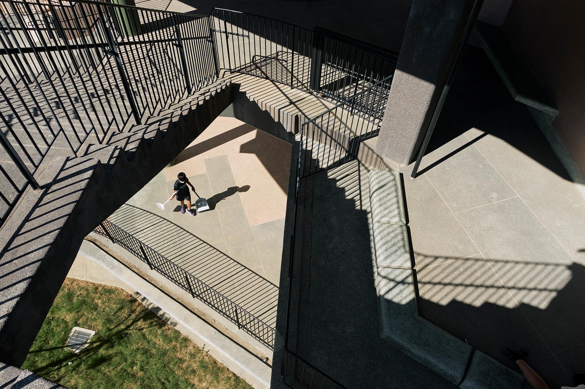 We intentionally avoided creating recognizable forms to create an organic forest that expands horizontally. Its fragmented yet inclusive and limitless layout stood in contrast to the tall and luxurious apartments in the neighborhood, resisting those tedious, ubiquitous, predictable, and discordant vertical lines.