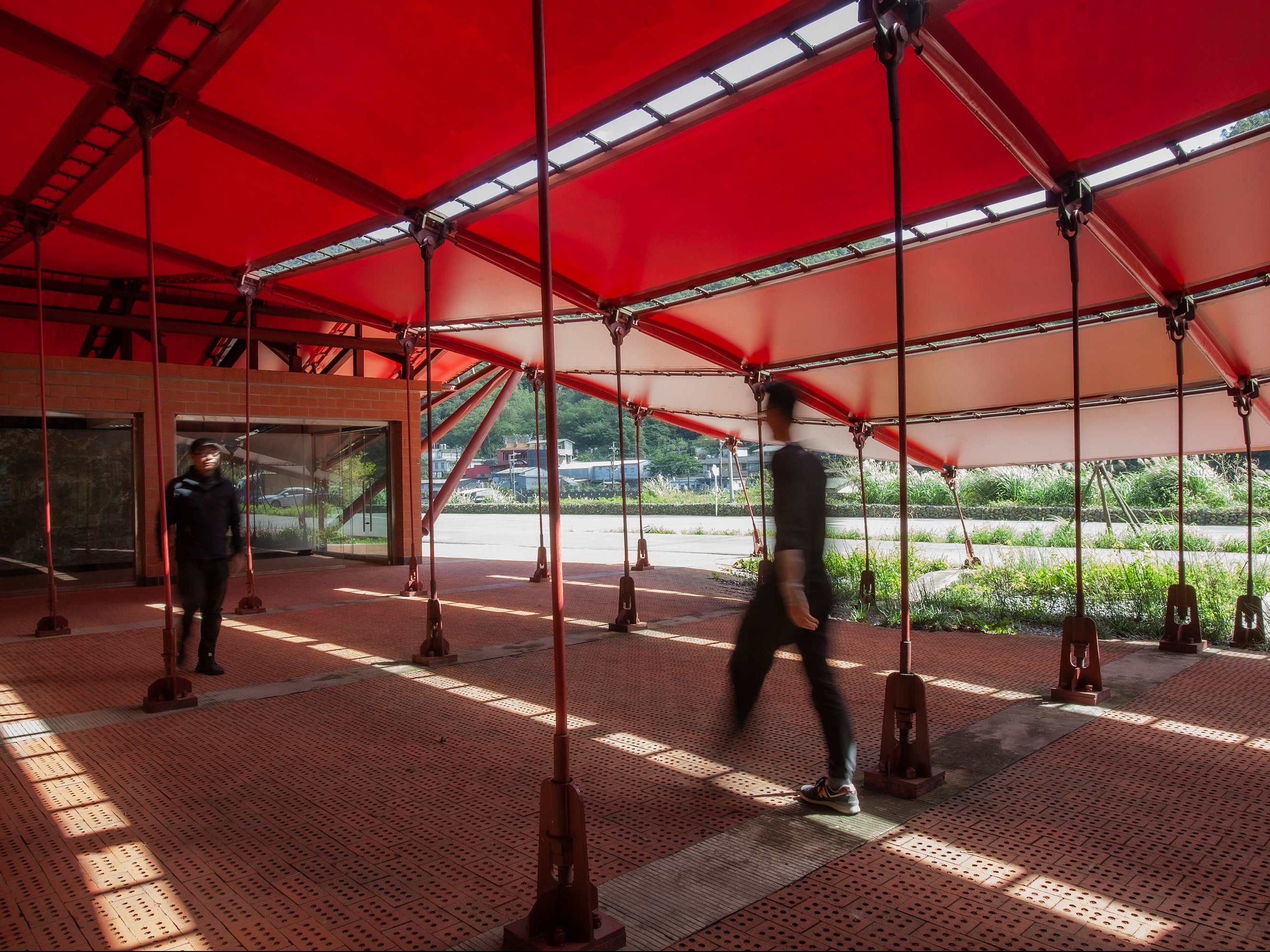 The architectural appearance is deliberately subdued, employing a lightweight tent-like structure to provide hikers with a resting place during their journey. Inspired by historical references such as Dr. George Leslie Mackay's missionary travels from Tamsui to Yilan in 1873, and Prince Kitashirakawa’s military encampment nearby during the 1895 invasion of Taiwan, the design aims to recapture the enduring imagery of travelers navigating the challenging terrain of the Tamsui-Kavalan Trail.