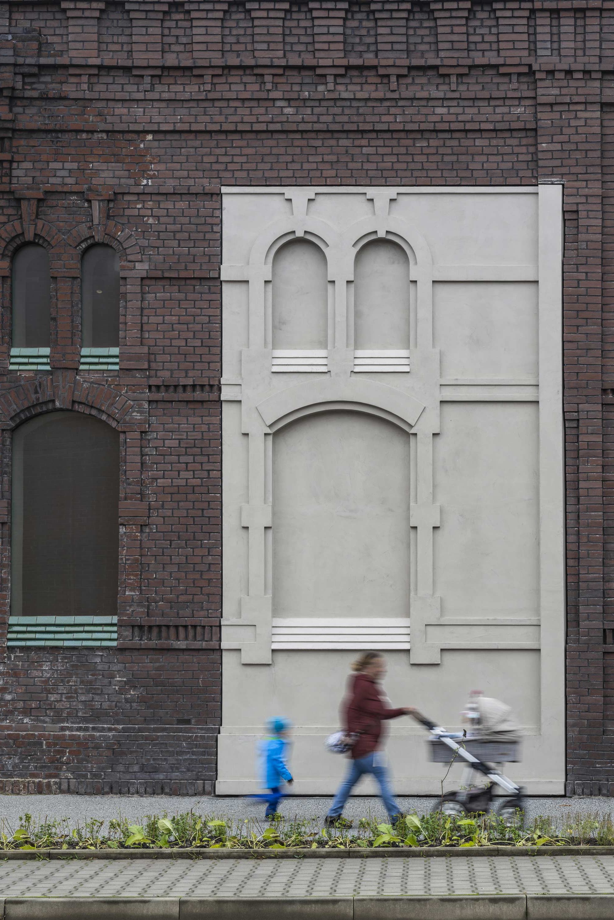 這座屠宰場牆體破損嚴重,多處穿洞,煙燻磚牆見證了城市的工業歷史。我們選擇面對這些時間落定的痕跡,並為這座建築增添新層次。我們保留了沾染污漬的磚牆和窗戶原有的特徵,使用現代材料填補牆體開口,同時保留古老裝飾,並採用微型混凝土重建已坍塌的部分。