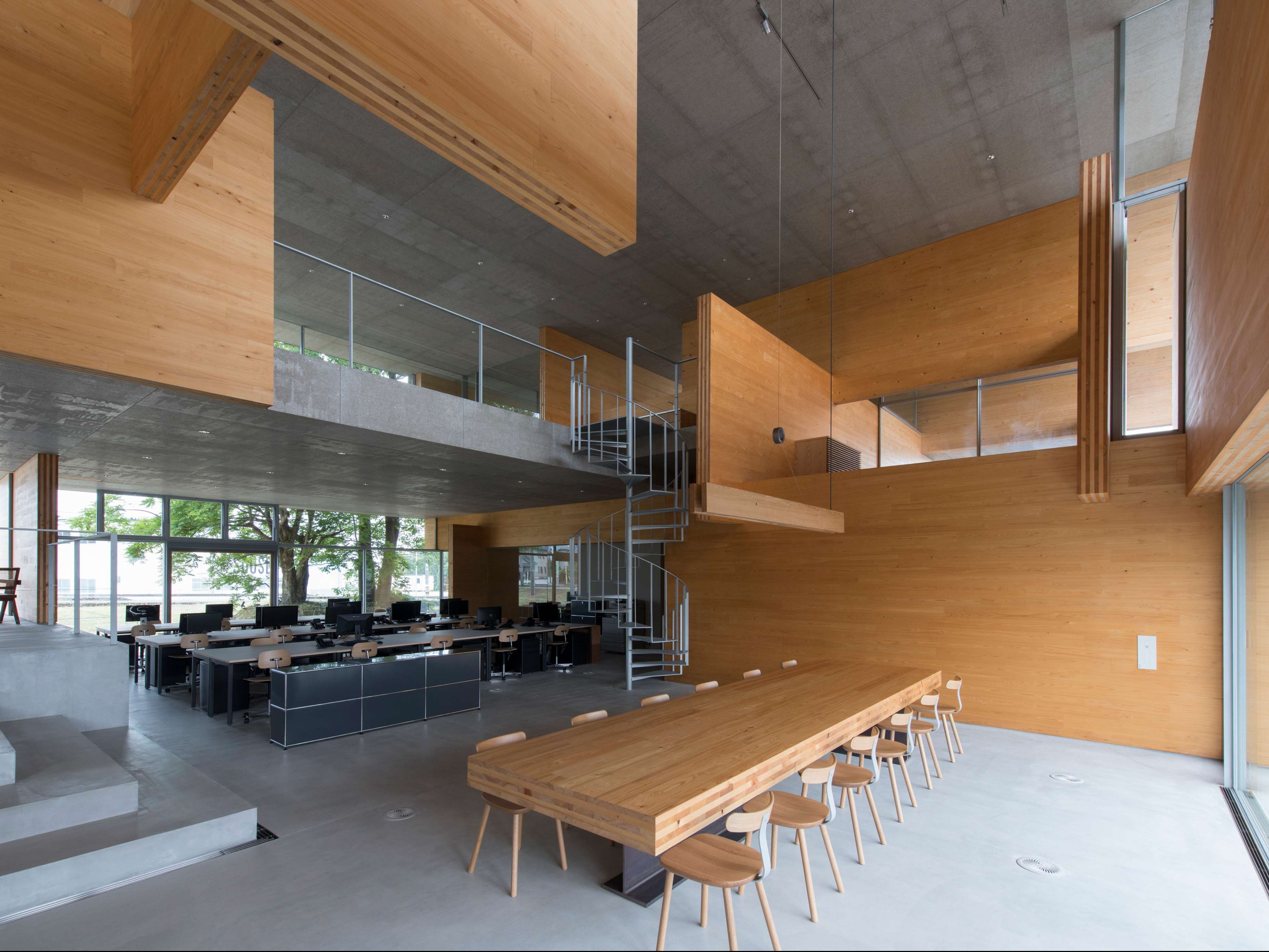 The architectural spaces born from this system are constructed in a manner analogous to the directional properties of CLT laminae. Spaces are assembled to intersect orthogonally in specific directions, while relationships between these anisotropic layers of space are stitched together through oblique connections. This results in a completely new spatial quality. The non-uniform spatial relationships combined with the atmosphere surrounding the mass of CLT create a unique sense of place entirely distinct from the uniformity characteristic of the Domino system.