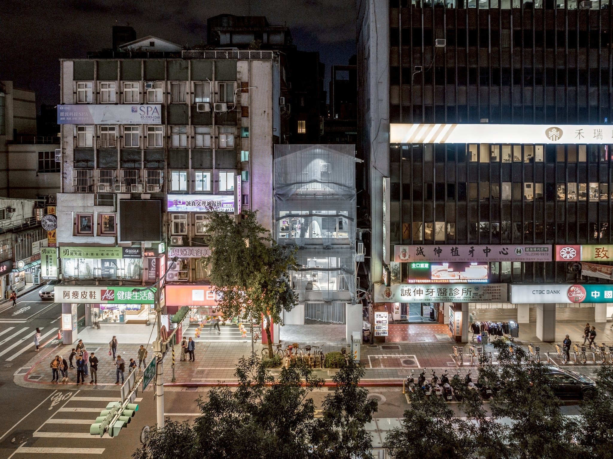 神農氏位於臺灣臺北市的黃金地段。在臺北城市的快速發展中,是為數不多保留下來典型臺灣傳統連棟街屋之一。與周圍商業建築與滿是混亂標識和霓虹燈的景象形成對比,通過最初的調查,我們發現如何創建一個不同於傳統商業建築並能夠與城市進行對話的建築立面。這種設計方法與業主想要將空間用於創新的人工智慧技術研發的願景一致,從而創造了與過去不同的空間使用和建築表達。這也成為了我們設計的起點。